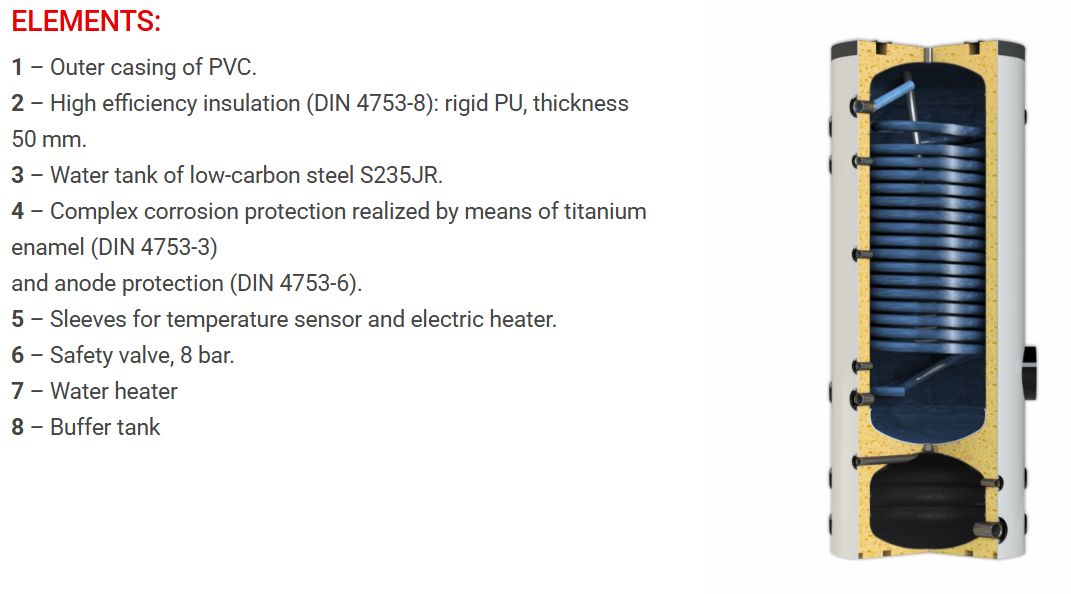 Sunsystem SWPH 250 soojaveeboiler 250 l + puhverpaak 60 l