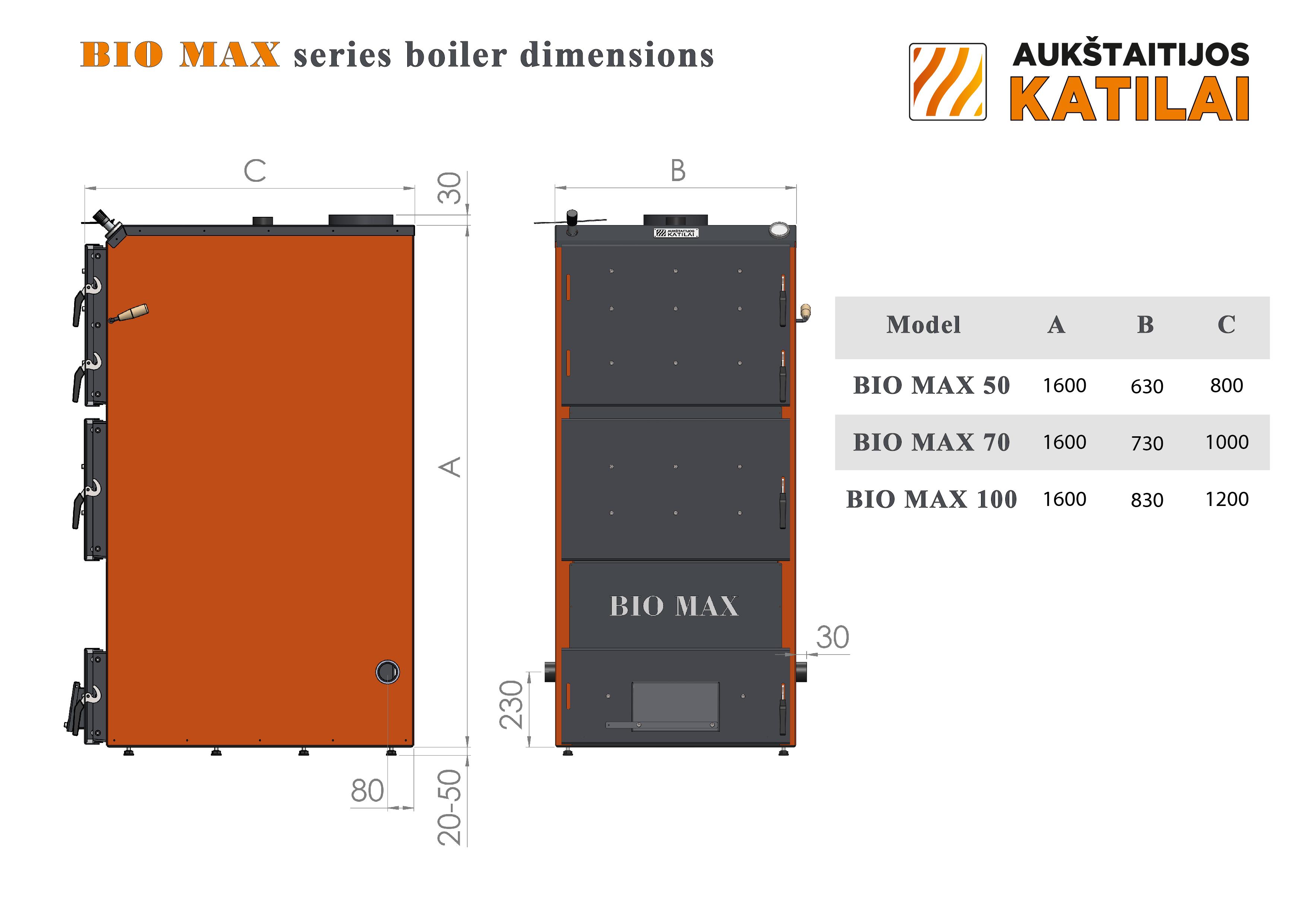 BIO MAX pealtpõlemiskatlad, tahkeküttekatlad 50-100 kW, ROOSTEVABAST TERASEST